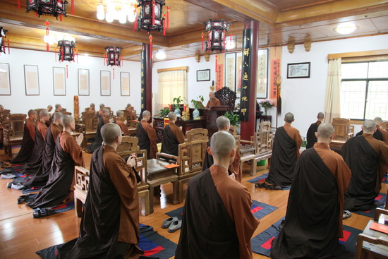 2012年5月3日,戒期圆满,24位沙弥正式成为比丘。5月4日一早,悉数回到四祖祖庭的新戒比丘在四祖殿向祖师销假,并来到方丈室礼谢老和尚。
