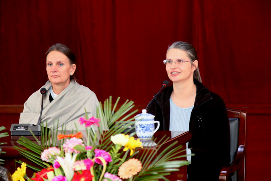 27日上午在慈云阁双峰讲堂雅戈尔先生向大众介绍了自己学禅和创办禅修中心的经历;禅修中心负责人之一Doris女士随后为大众详细介绍了本笃禅修中心的运行模式和禅文化目前在西方发展的情况。28日净慧老和尚带领雅戈尔先生一行参观了湖北省博物馆等处,详细介绍和了解了楚文化。期间还观看了禅宗历史人物黄梅戏《传灯》。