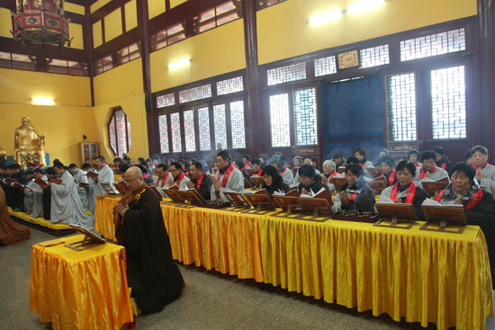2月24日,农历正月十五。凌晨三点大众云集大雄宝殿举行庄严隆重的斋天法会,上午在寺院各殿堂进行普供仪式,上元节消灾吉祥祈福法会圆满。法会期间每晚由明基首座带领禅修,并应请上堂说法和传授了三皈五戒。法会结束后由寺院向每一位参加共修的居士颁发了消灾延寿药师吉祥法会功德文牒以资鼓励。