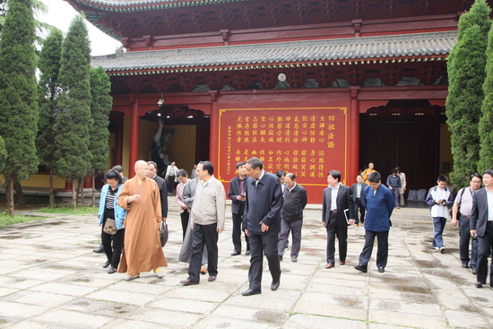 此次考察组由全国政协民宗委副主任、原青海省政协主席白玛任组长,一行共15人,17日下午在省市县主要领导的陪同下抵达四祖寺。明基大和尚及寺院主要执事在山门口迎接。