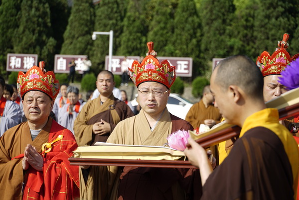 4月17日下午三时,主法法师带领寺院僧众、法会功德主、十方善信共襄盛举,举行盛大庄严送圣仪式,十方法界诸佛菩萨圣众请登云路,六道之凡众并诸眷属往生净土。此次水陆法会圆满结束!