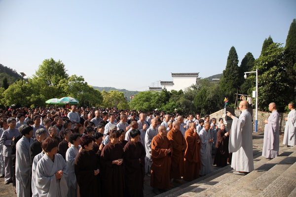 水陆法会圆满后次日,恰逢本寺开山祖师四祖道信大医禅师诞辰,为慎远追思、缅怀祖师功德,明基大和尚及寺院执事率僧俗两序大众三步一叩首,拾级而上,朝礼四祖大师毗卢塔并瞻礼传法洞,此次纪念活动圆满结束!